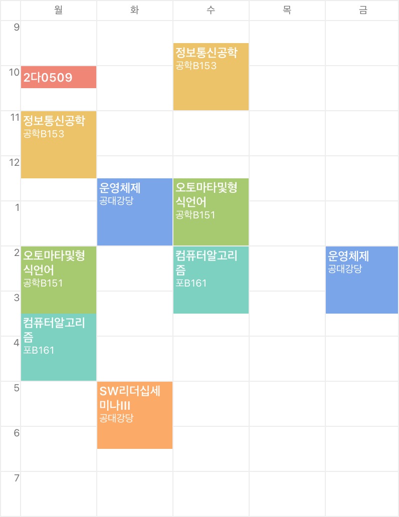 이제 시간표도 2학기만 더 짜면 끝이다ㅠㅠㅠ