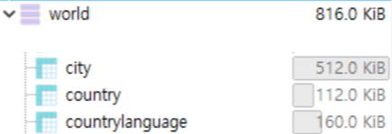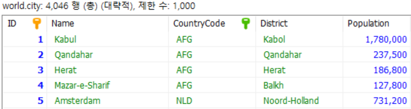 'world' 데이터베이스에는 'city', 'country', 'countrylanuage' 3개의 테이블이 있습니다.