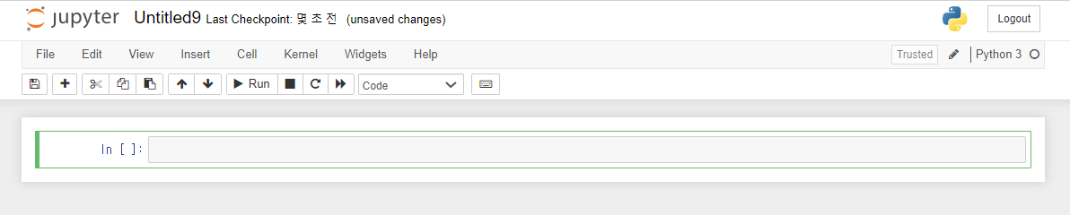 이렇게 하면 주피터노트북에서 파이썬으로 코드를 작성할 수 있습니다.